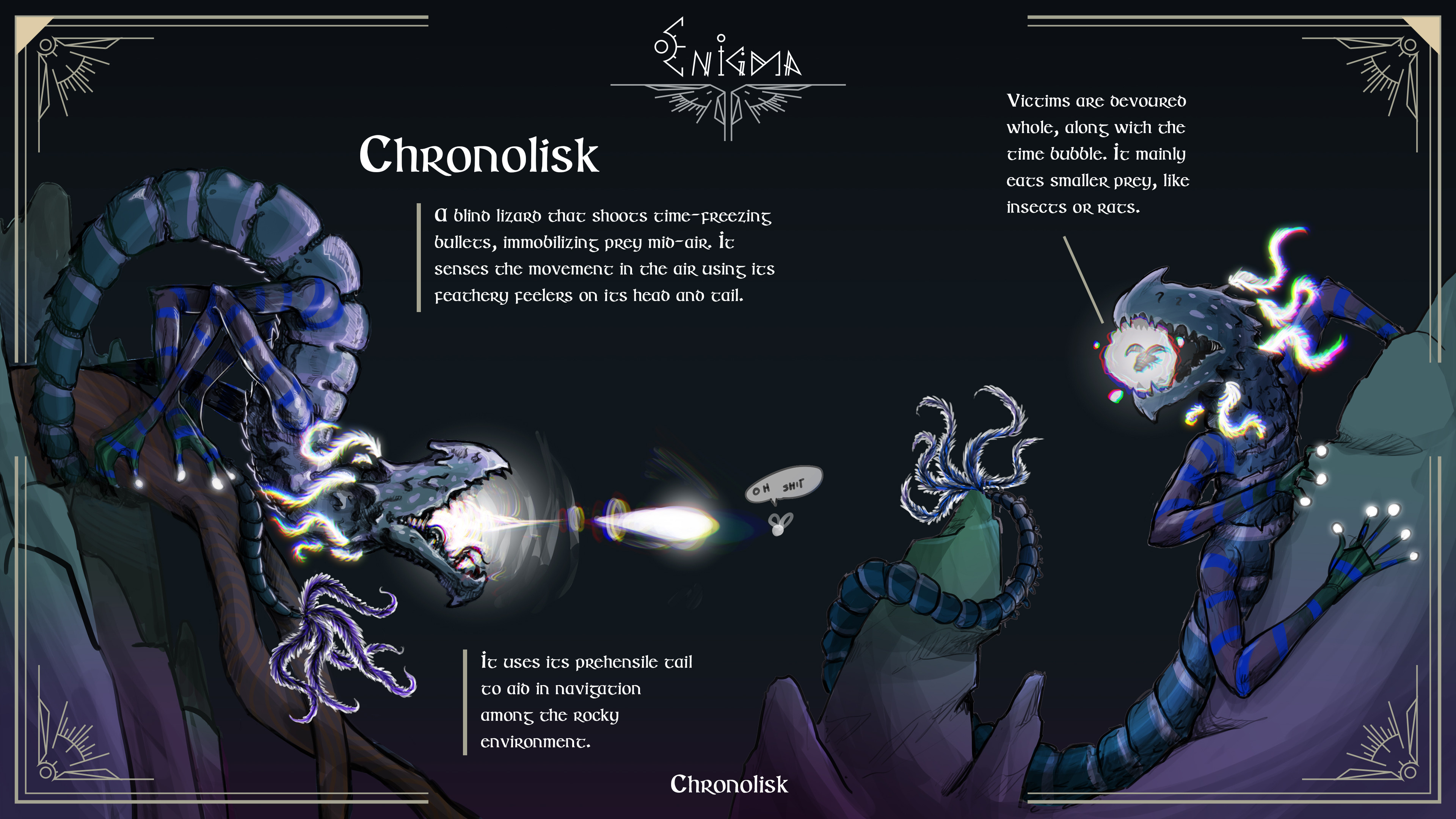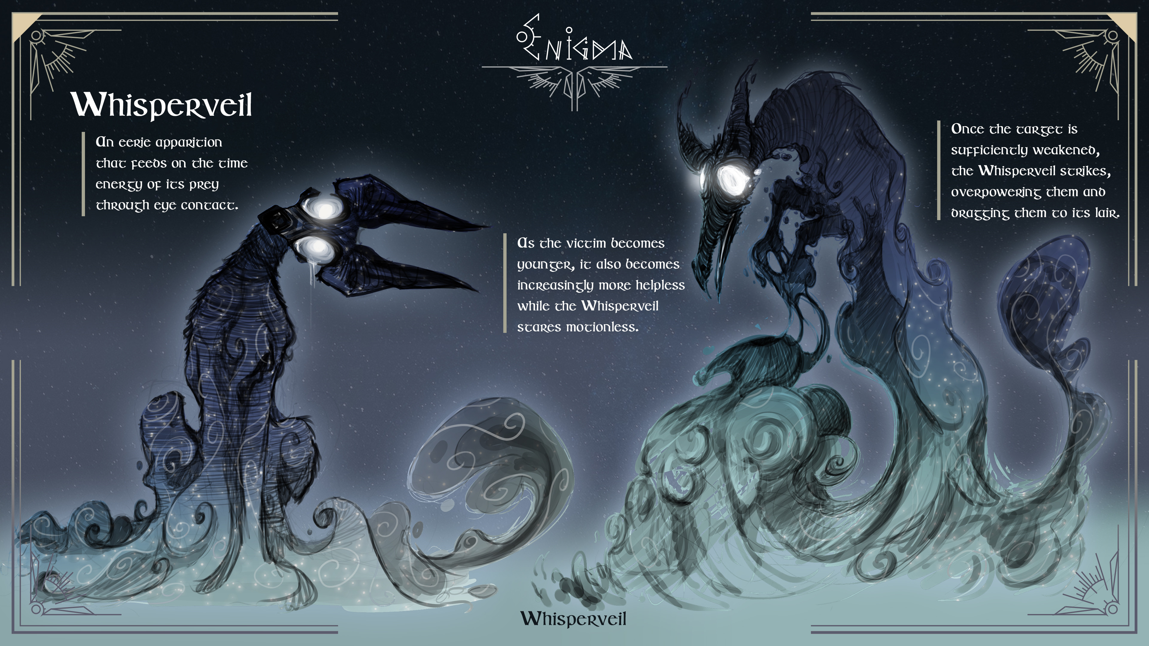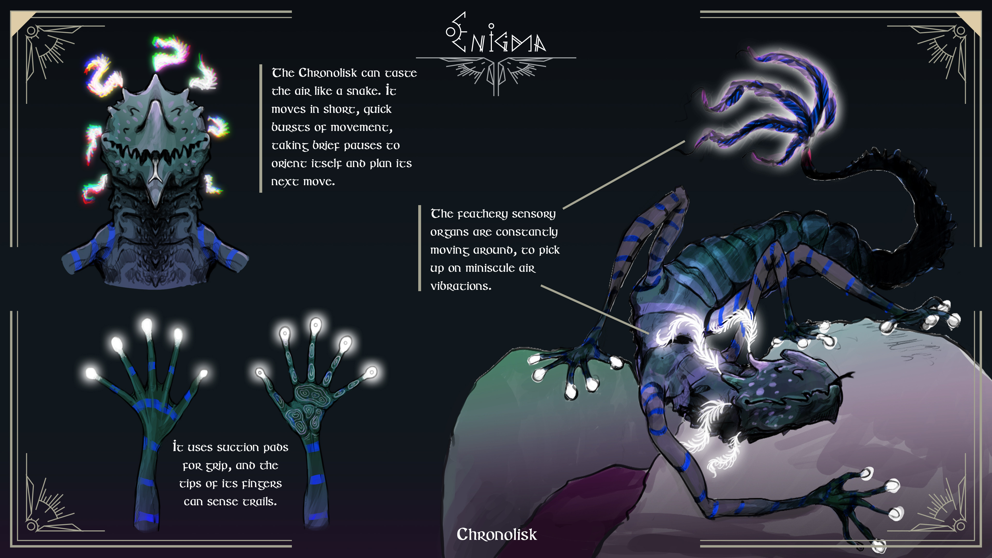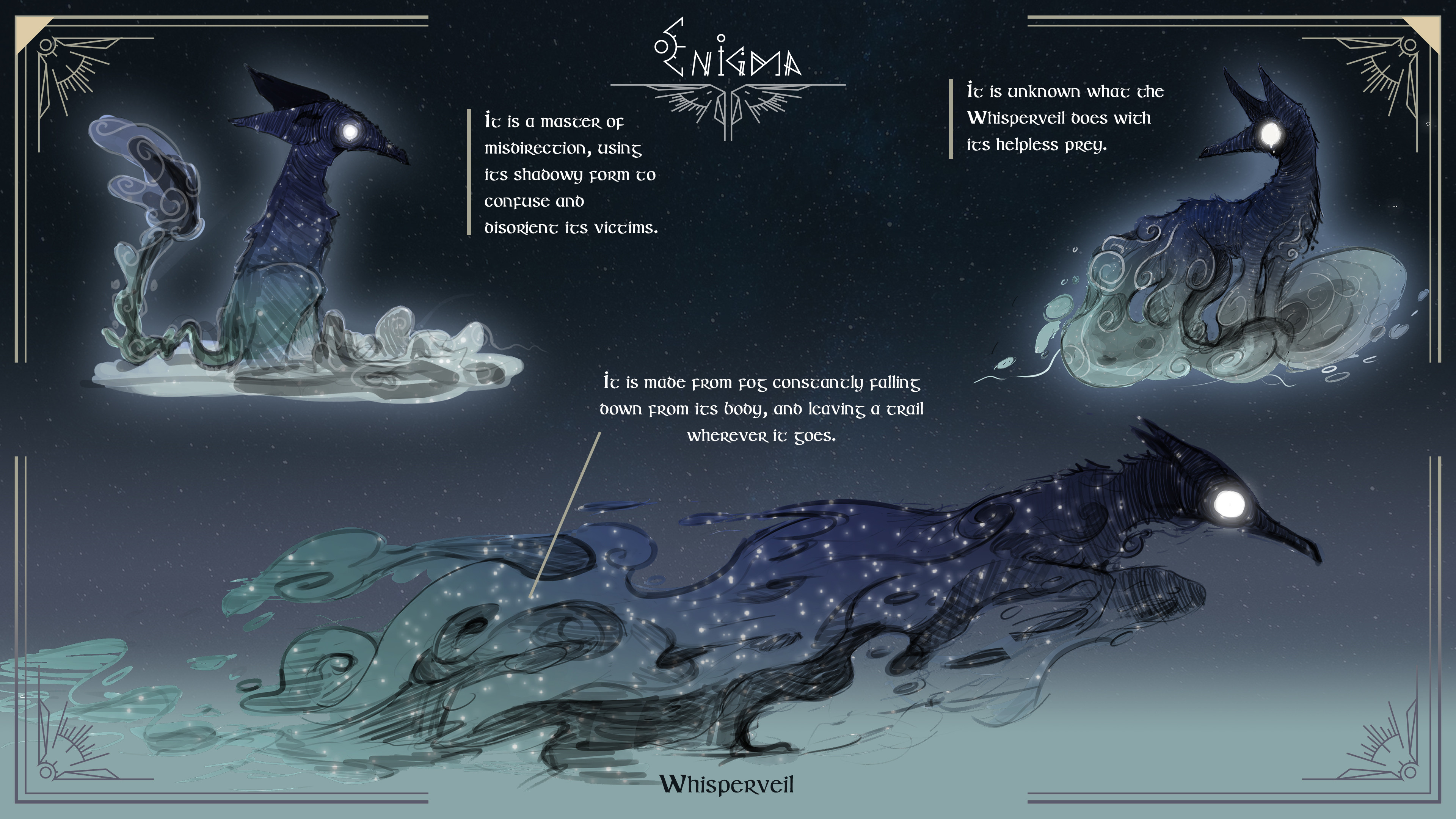 Creature designs I made as part of the Enigma project. They were designed to be part of the environments and interact with the characters, in a collaborative project.